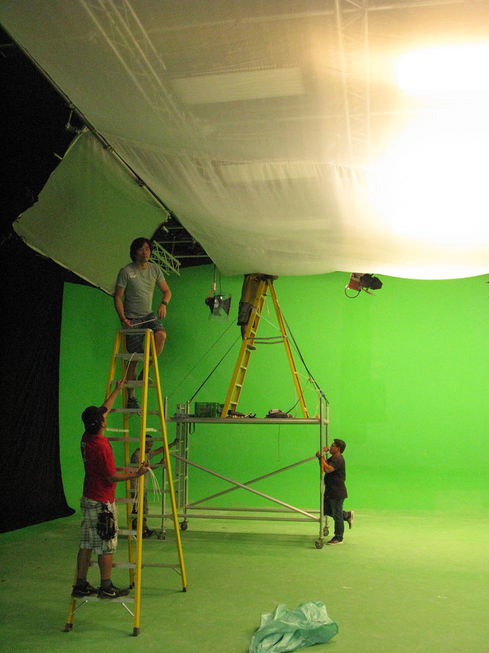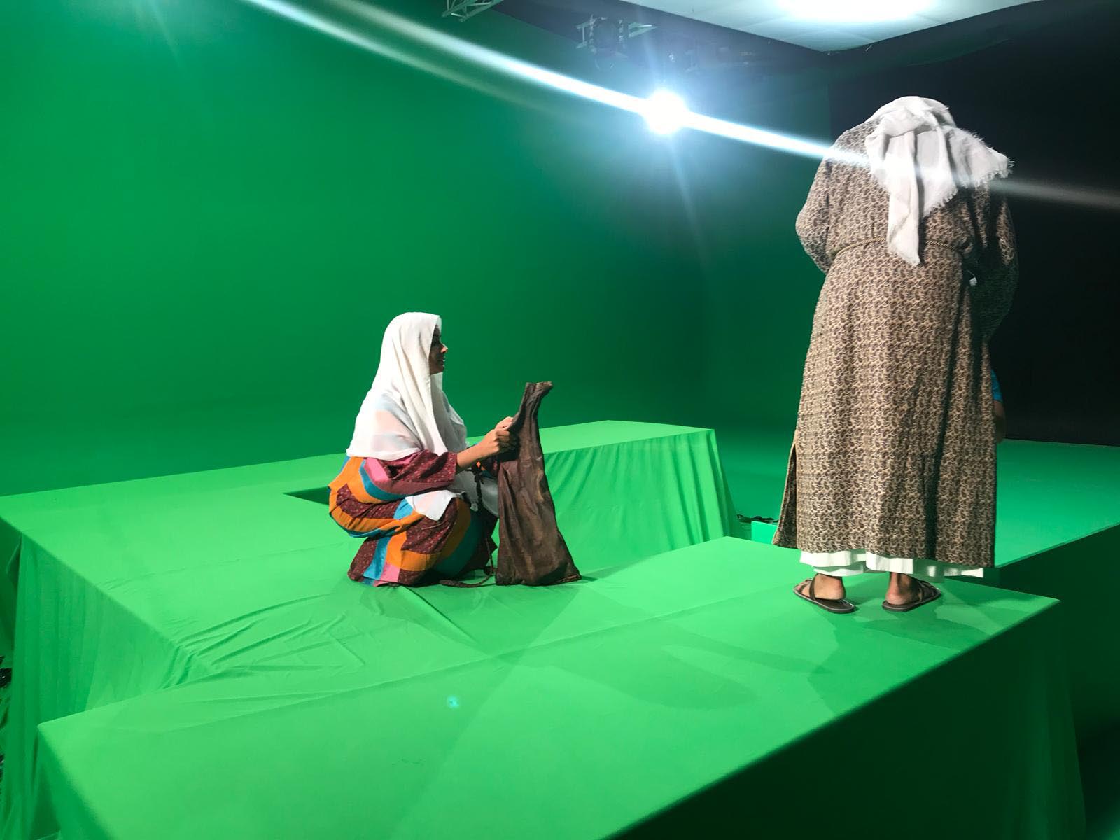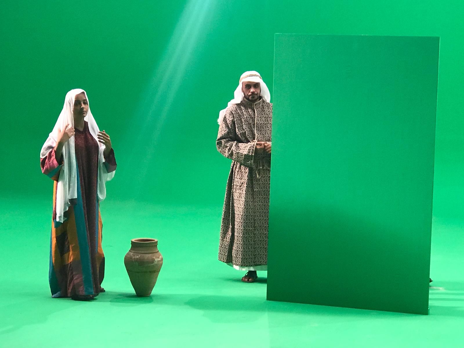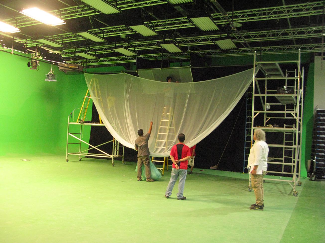 La proyección realizada sobre la murallas se consigue mediante el procedimiento de croma Key y la utilización de varios proyectores sincronizados.